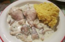 Ingrediente: 400 g ciuperci 200 g piept de pui 350 g smantana o ceapa potrivita 2 linguri rase de faina 2 catei de usturoi marar Mod de Preparare: Incingem in tigaie 2-3 linguri de ulei, adaugam ceapa ...