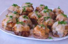 Ingrediente: 1 kg carne tocata de pui 2 felii de paine 1 cescuta cu lapte 1 cepe 1 oua 2 linguri cu faina sare, piper ulei Pentru sos: 1 lingura cu unt 1 lingura cu faina 1 cescuta cu smantana 2 foi ...