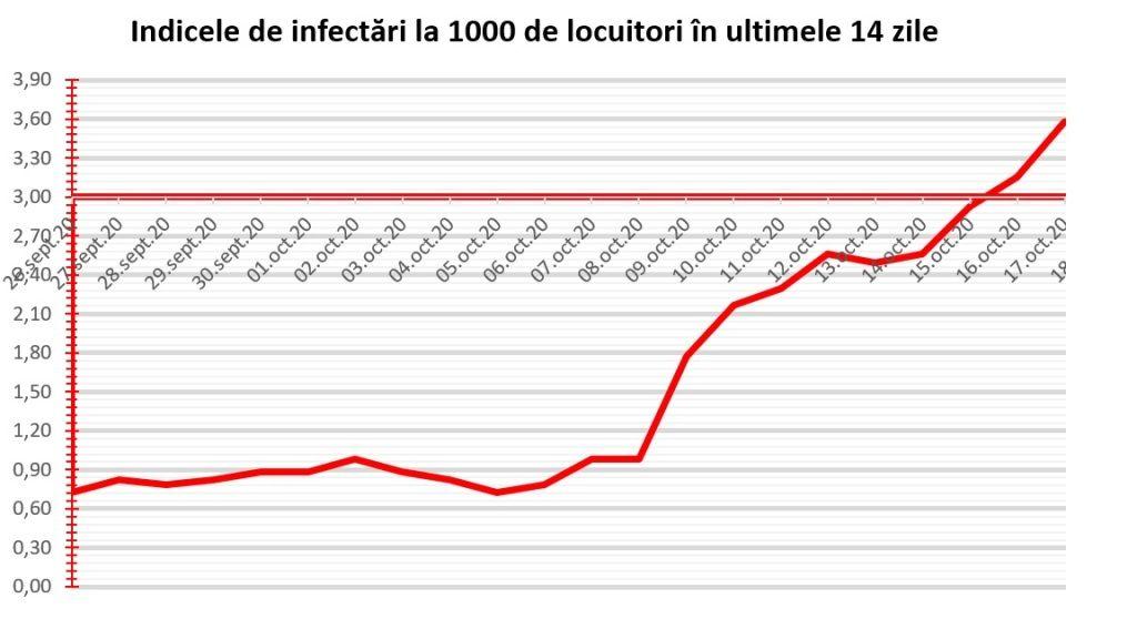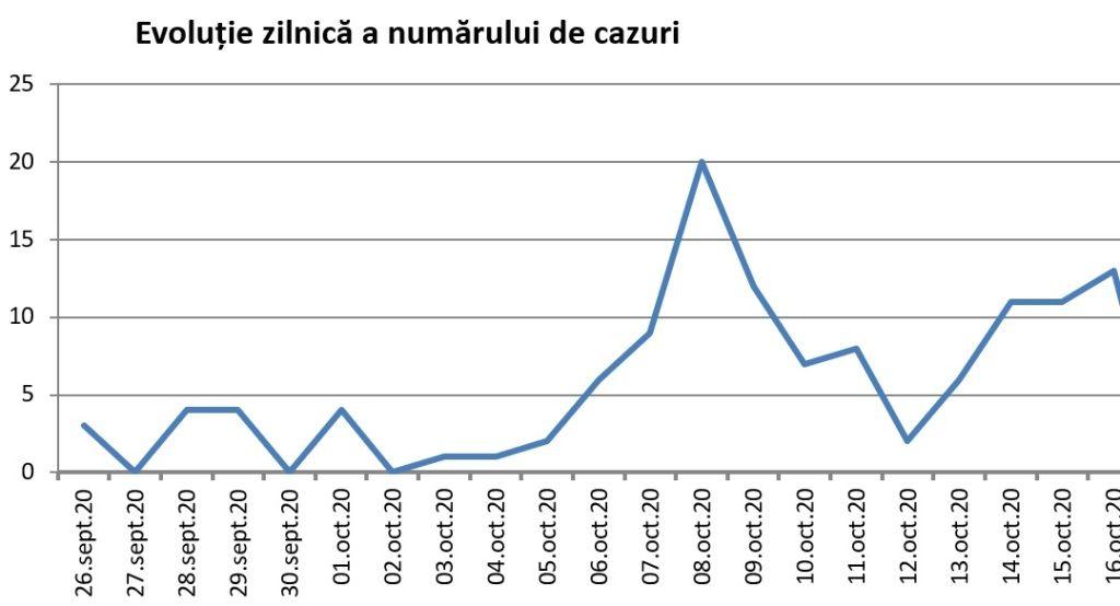Ieri 16 octombrie au fost înregistrate 13 noi cazuri iar rata de infectare este de 3,58 /1000 locuitori.