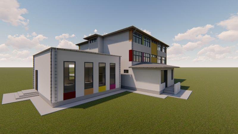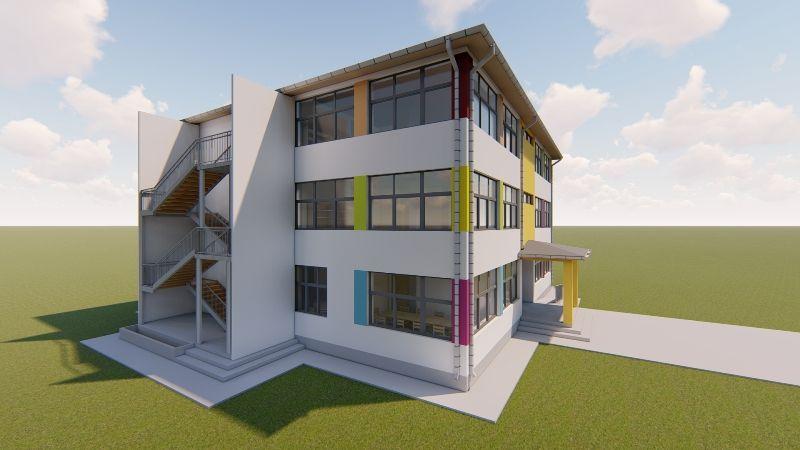 Noua grădiniță va cuprinde: 4 săli de clasă, 4 dormitoare, sală de mese, sală multifuncțională, vestiare, grupuri sanitare pentru fiecare clasă, cabinet medical, birouri, având o suprafată construită pe cele trei nivele de 1220 mp.