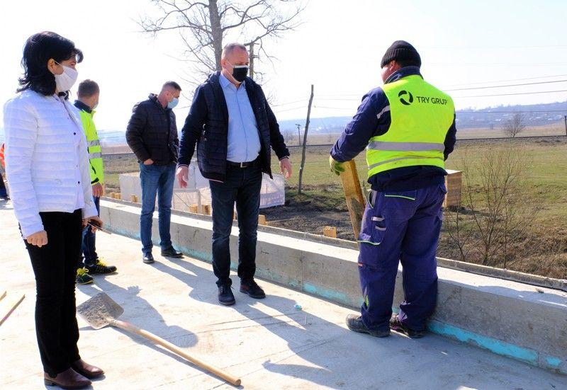 Doina Federovici, președintele Consiliului Județean (CJ), Dorin Birta, vicepreședintele CJ, și Cătălin Gheorghian, directorul Direcției Județene de Drumuri și Poduri, au inspectat lucrările pe care le execută constructorul pe cei 2,5 kilometri.