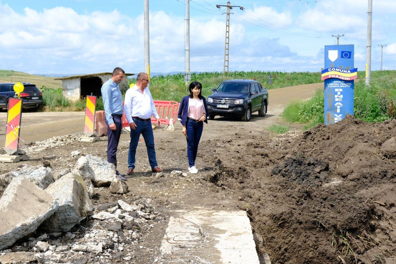 Doina Federovici, președintele Consiliului Județean Botoșani, Dorin Birta, vicepreședintele Consiliului Județean, și Cătălin Gheorghian, directorul Direcției Județene de Drumuri și Poduri, s-au întâlnit joi, la Prăjeni, cu reprezentanții firmei care efectuează lucrarea de modernizare a celor 2,77 kilometri de drum rămas de piatră, pentru a găsi cele mai bune soluții de lucru, astfel încât traficul să nu fie închis.