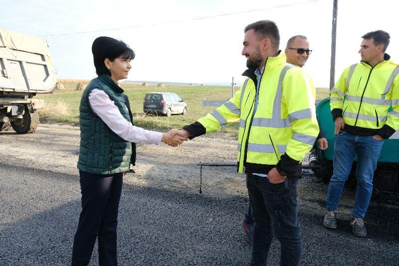 Președintele Consiliului Județean, Doina Federovici, vicepreședintele Dorin Birta și directorul Direcției Județene de Drumuri și Poduri, Cătălin Gheorghian, au inspectat lucrările efectuate pe cele trei loturi.