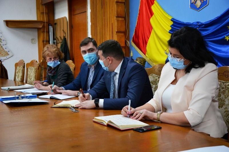 În cadrul întâlnirii s-a discutat despre proiectul privind ”Lucrările de reparații curente determinate de uzură a tencuielilor exterioare la fațadele clădirii, respectiv treptele și podestele clădirii Palatului Administrativ din Botoșani”.