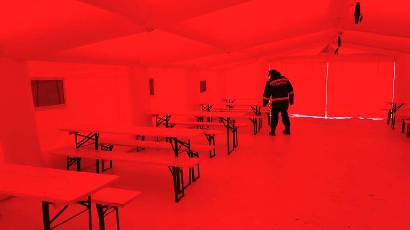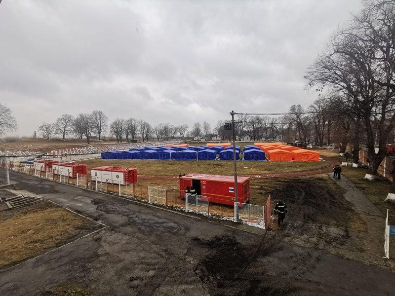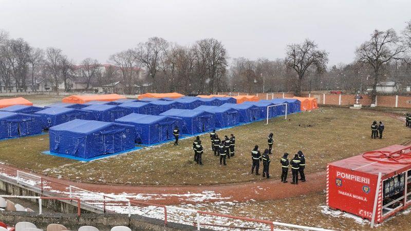 Unitatea mobilă, formată din 30 de corturi, este pregătită să asigure cazarea temporară a cetățenilor sosiți din zona de conflict.