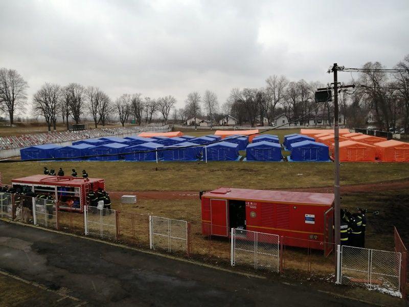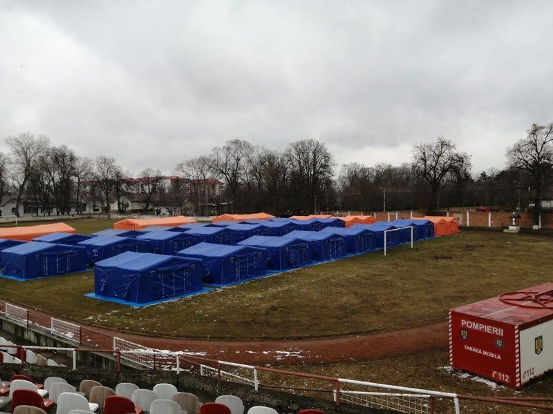 Pentru furnizarea raspunsului eficient în sprijinul autorităților din zonele de graniță și implicit a cetățenilor ucraineni veniți în Romania, în cursul zilei de astăzi, a fost instalată o tabără mobilă în municipiul Dorohoi, pe Stadionul 1 Mai.