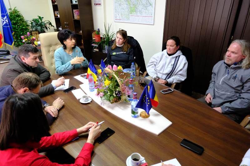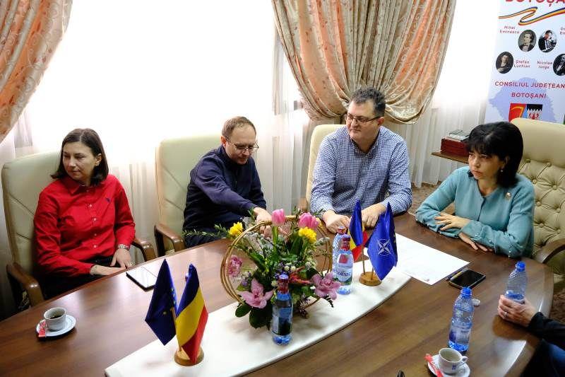 Președintele Consiliului Județean Botoșani, Doina Federovici, a primit sâmbătă, 5 martie 2022, o delegație a asociației americane United Aid Foundation, formată din: John Alex (președinte și membru fondator), Abigail Hayo (membru al boardului de conducere), dr Lisa Heath (medic voluntar) și Alex Drescanu (voluntar originar din Botoșani).