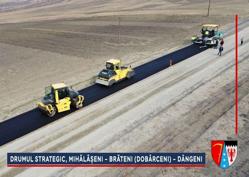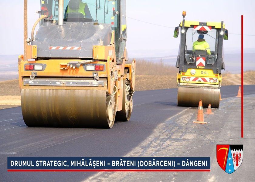 În aceste zile se toarnă primul strat de asfalt pe sectorul V din Lotul 1 al Drumului Strategic, Mihălășeni – Brăteni (Dobârceni) – Dângeni, în lungime de aproximativ 10 kilometri. „Rezolvăm una dintre marile probleme de infrastructură din această parte a județului. Sectorul de drum din DJ 294 care a fost prins în Drumul Strategic, Mihălășeni – Brăteni (Dobârceni) – Dângeni, va fi în întregime asfaltat în această săptămână, iar până la sărbătorile pascale, constructorul va începe lucrările la rigole carosabile și șanțuri. În paralel, se va turna primul strat de asfalt și în satul Rediu (comuna Răuseni), în zona care era afectată de alunecări de teren”, a declarat Doina Federovici, președintele Consiliului Județean, care alături de vicepreședintele Dorin Birta, a inspectat lucrările efectuate.