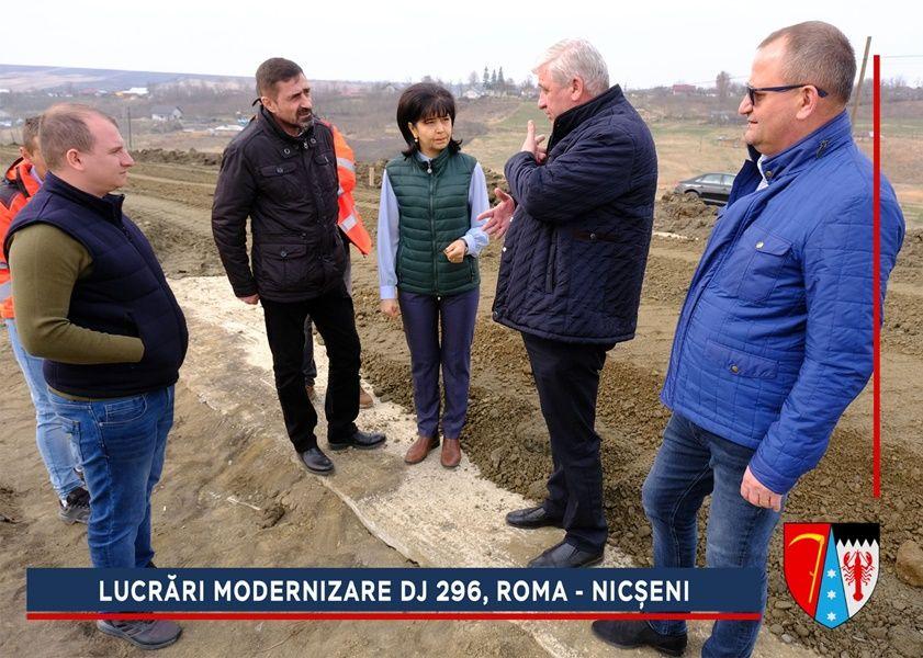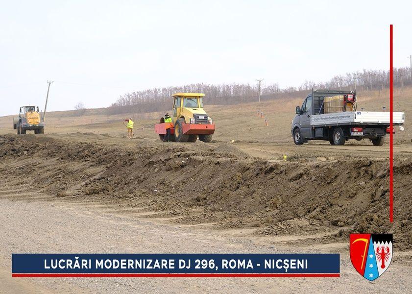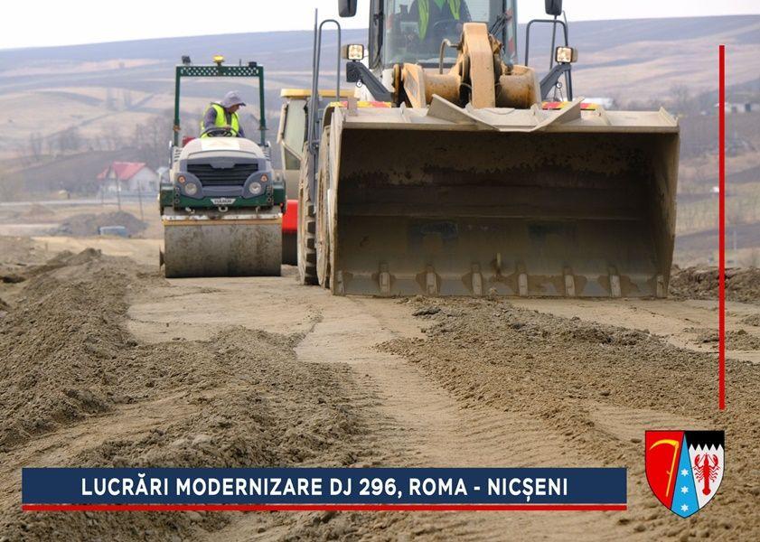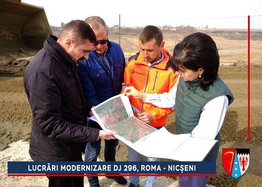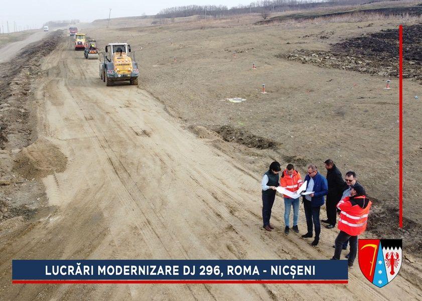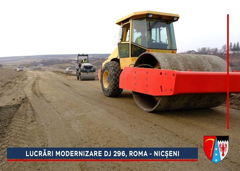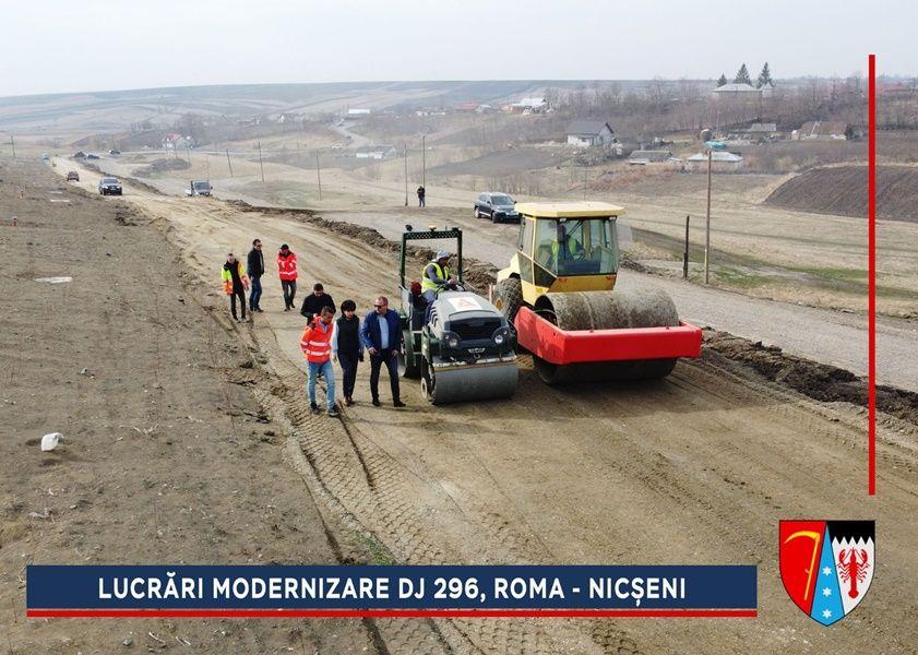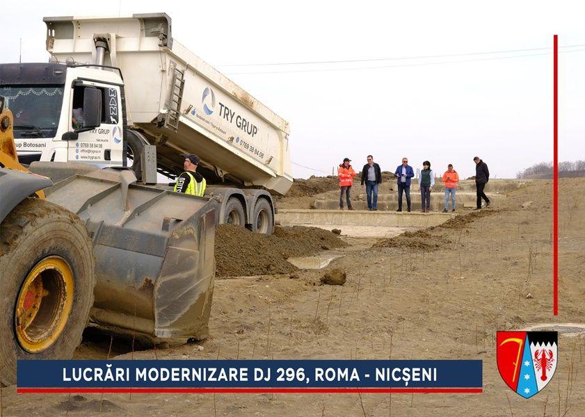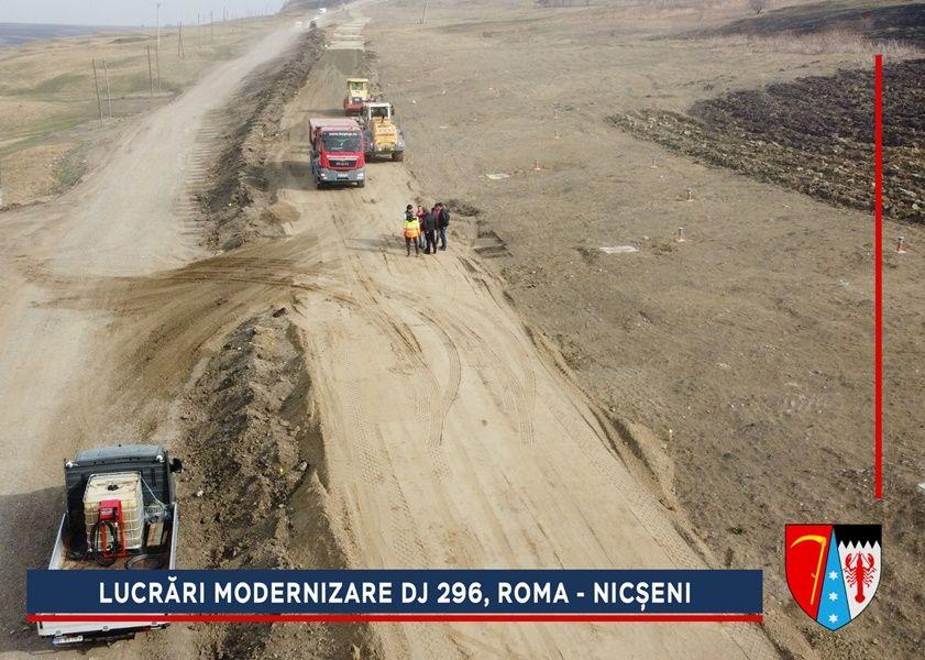 Constructorii au început lucrările de refacere a structurii rutiere de la ieșirea din Roma spre Nicșeni. Pe parcursul anului trecut, alunecarea de teren de pe acest sector din DJ 296 a fost stabilizată printr-un proiect de aproximativ trei milioane de euro, finanțat de către Compania Națională de Investiții (CNI).