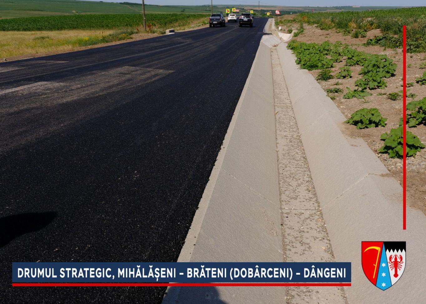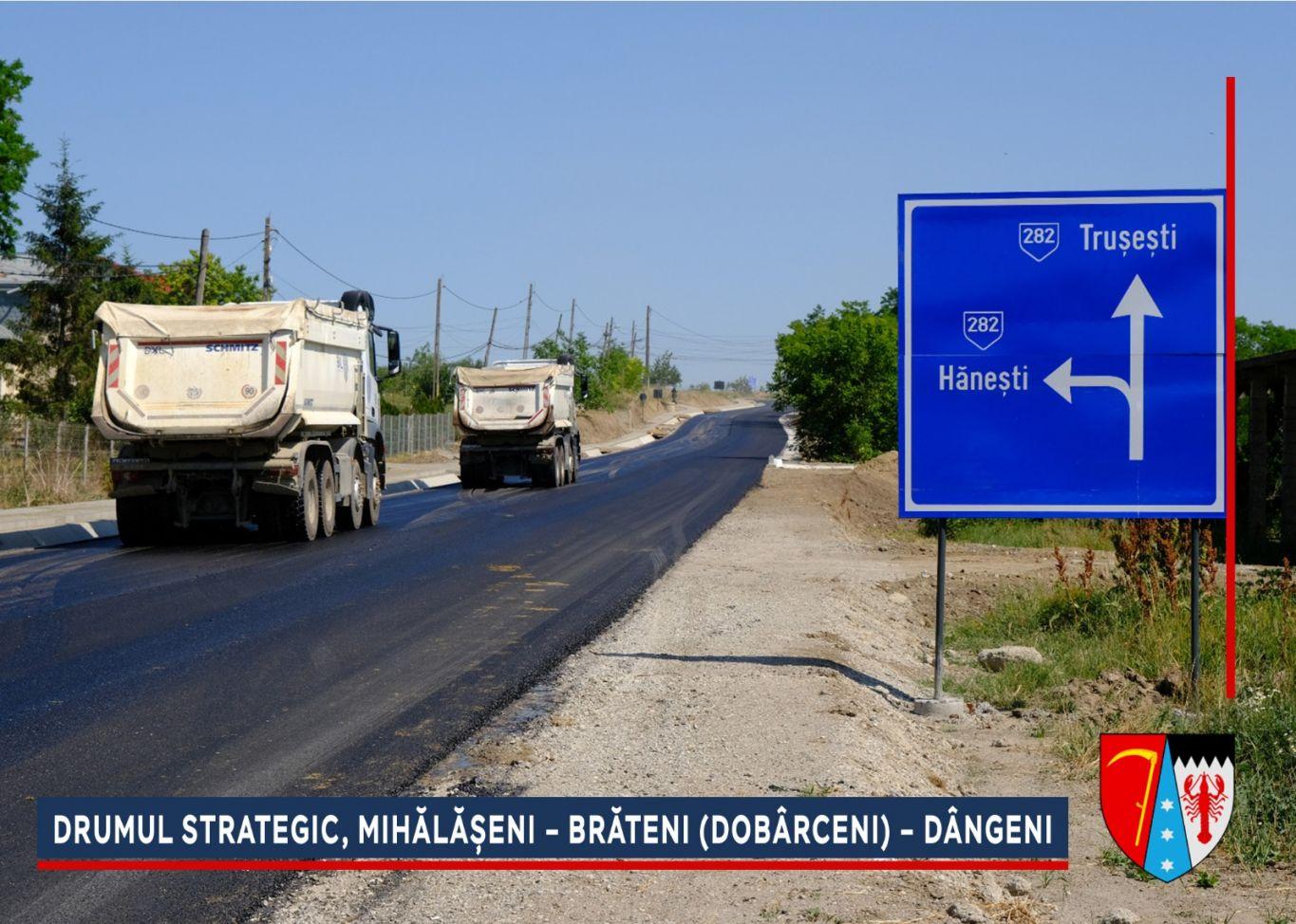Lucrările de asfaltare a celor 30 de kilometri din Lotul 1 al Drumului Strategic au fost finalizate cu un an mai devreme, față de termenele contractuale. După ce în urmă cu o săptămână constructorul finaliza turnarea stratului de uzură pe sectorul Șipote – Rediu – Răuseni – Călărași, luni, a terminat și sectorul Dângeni – Brăteni – Mihăileni.