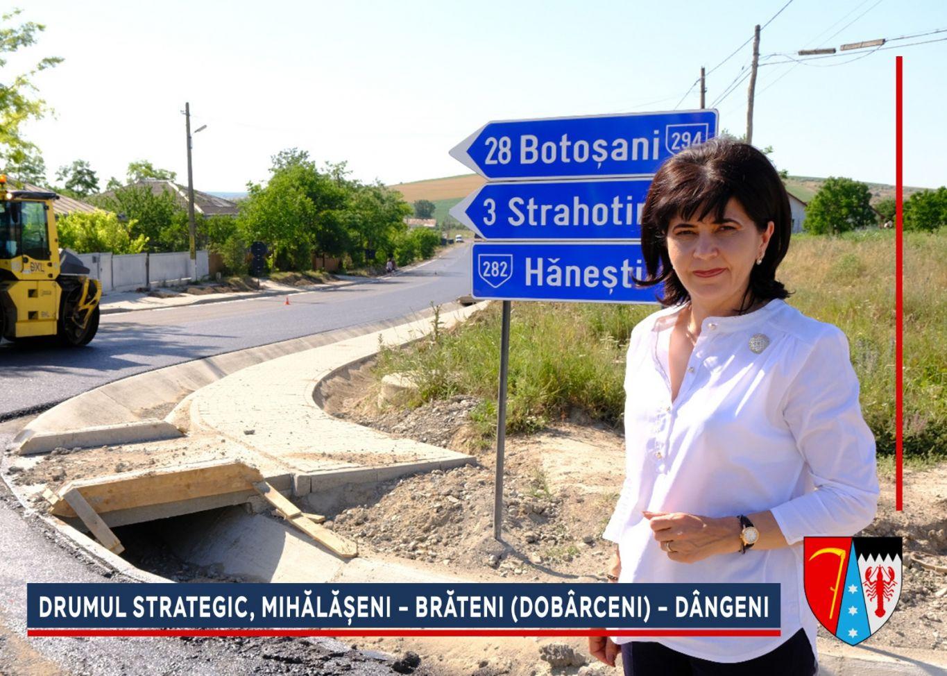 „Am promis că vom face din modernizarea Drumului Strategic o prioritate și ne ținem de cuvânt. Constructorul de pe Lotul 1 a turnat asfaltul și a montat semnele de circulație pe toți cei 30 de kilometri. Zilele următoarele, va finaliza realizarea sensului giratoriu din Răuseni, modernizarea podului peste Jijia de la ieșirea din Răuseni spre Călărași, accesele pe proprietăți și se vor efectua marcajele axiale și longitudinale, după care va solicita efectuarea recepției. Am avut parte de un constructor bun, care a luat în serios solicitările noastre privind calitatea lucrărilor și termenele de execuție”, a declarat Doina Federovici, președintele Consiliului Județean Botoșani.
