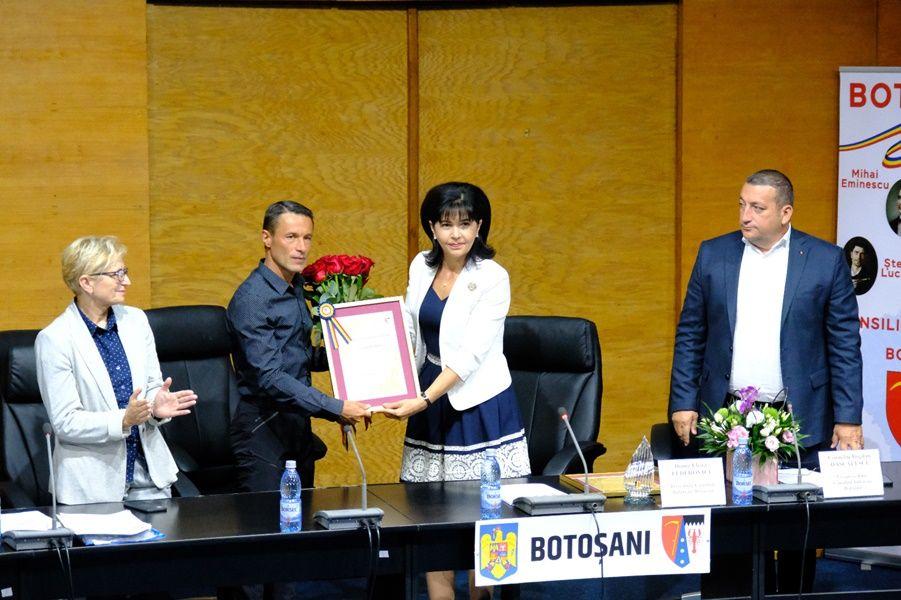 „Campionul inimilor”, Iulian Rotariu, și profesorul Daniela Iolanda Vieru, care-l pregătește, au fost premiați în debutul ședinței extraordinare de vineri a Consiliului Județean pentru rezultatele obținute în cursele la care tânărul botoșănean a luat startul.