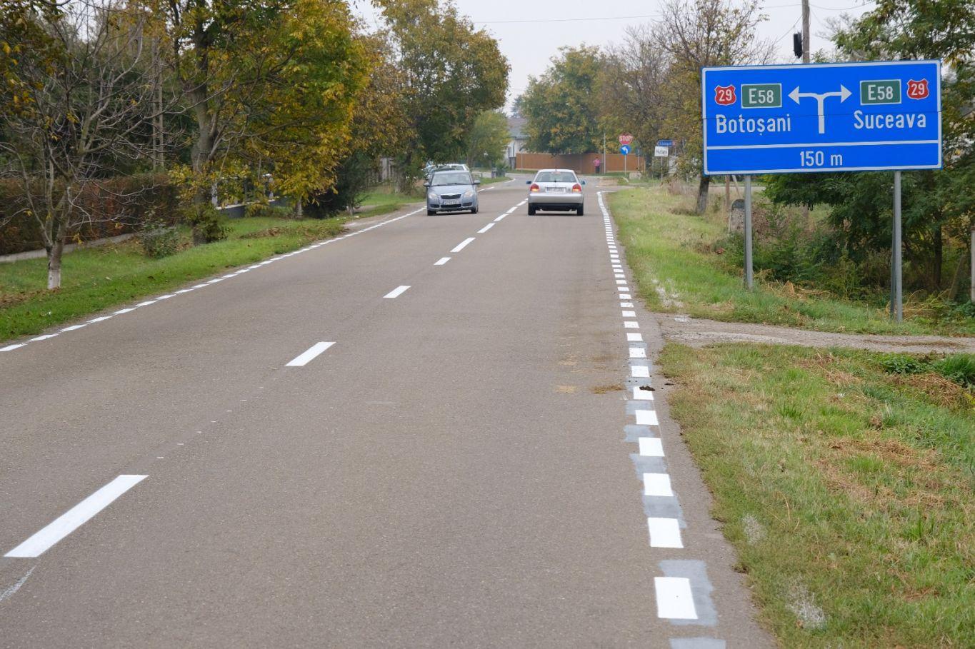 Primele drumuri marcate astfel sunt cele cu circulație intensă, respectiv> DJ291, Leorda – Bucecea – Huțani (16 km); DJ 208C, Lebăda – Orășeni Deal –Vorona – Joldești (22 km); DJ 208I, Joldești – Tudora – limită județ Suceava (10 km) și DJ 207N; Botoșani – Curtești – Orășeni Deal – Cristești – DN28B (14 km) și vor fi refăcute marcajele și pe sectoarele DJ282B, Flămânzi – Prăjeni (15 km). Tot în această toamnă se vor realiza marcaje pe DJ208H, Copălău – Cerbu – Sulița (9 km); DJ296, Botoșani – Roma – Nicșeni – Podeni (26 km); DJ296B, Ungureni – Mândrești – Călugăreni – Călugărenii Noi (13 km) și DJ291B, DJ291C – Șendriceni (2,5 km).