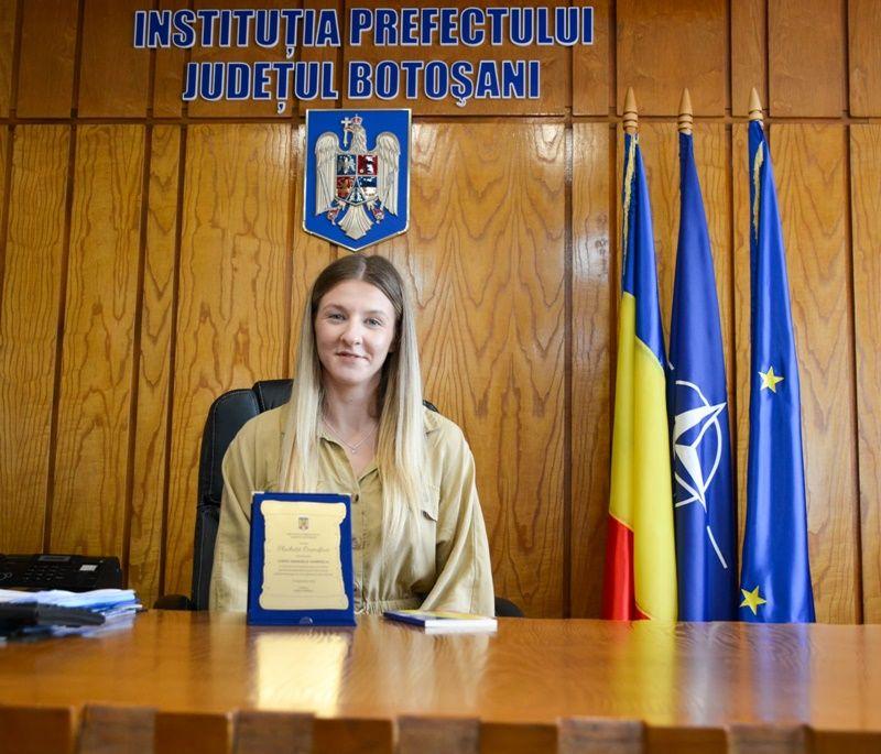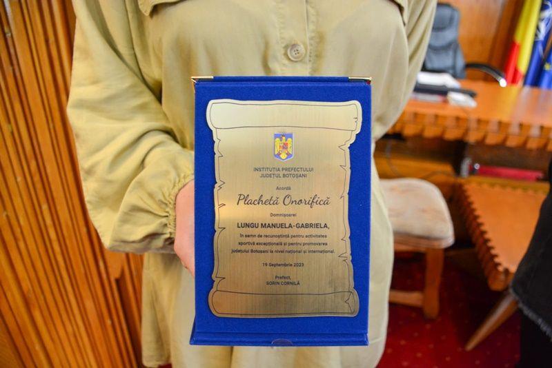 Reprezentantul Guvernului în teritoriu, Sorin Cornilă, i-a oferit astăzi o plachetă onorifică canotoarei Manuela Gabriela Lungu în semn de recunoștință pentru activitatea sportivă excepțională și pentru promovarea județului Botoșani la nivel național și internațional.