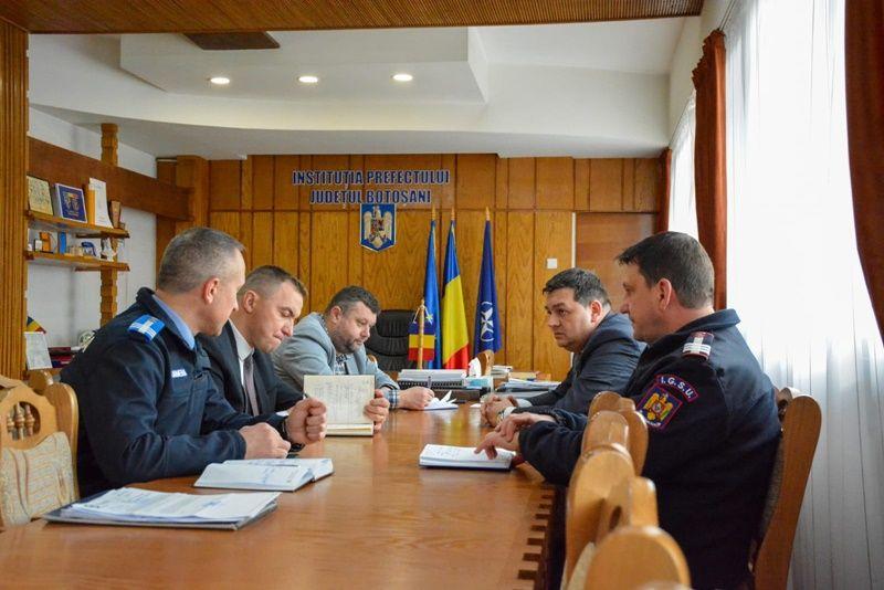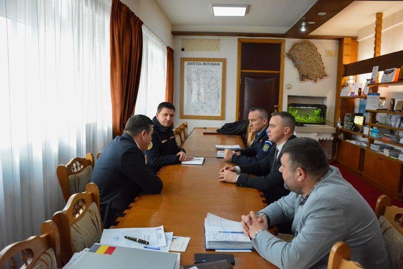 La întălnirea de lucru au participat Comisar șef Costîn Tudor – Împuternicit șef al IPJ Botoșani, colonel Petru Pălimariu – Prim Adjunct al Inspectorului Șef al ISU Botoșani, Comisar șef de poliție Valeriu Harabulă – șef al Serviciului Teritorial al Poliției de Frontieră Botoșani și Colonel Cristian Boariu – Inspector şef al Inspectoratului de Jandarmi Judeţean Botoşani.
