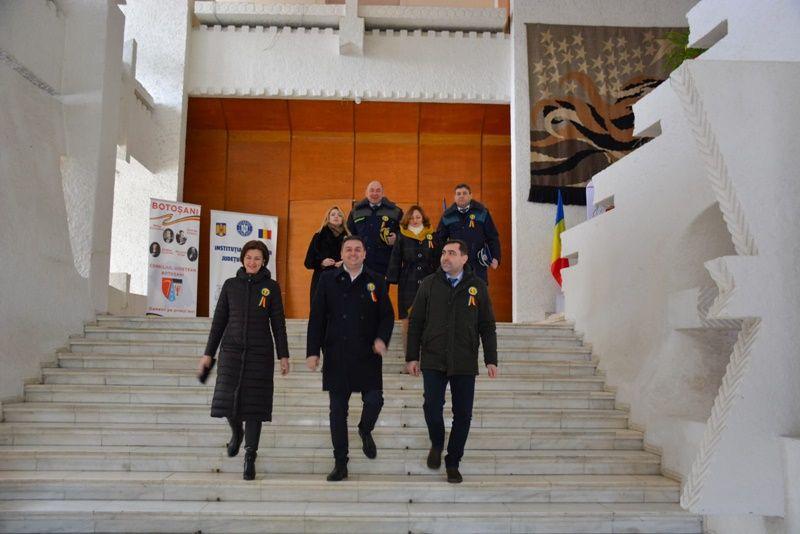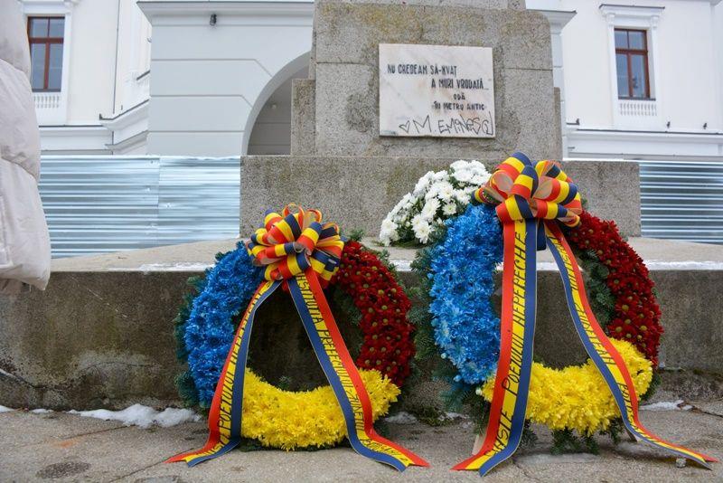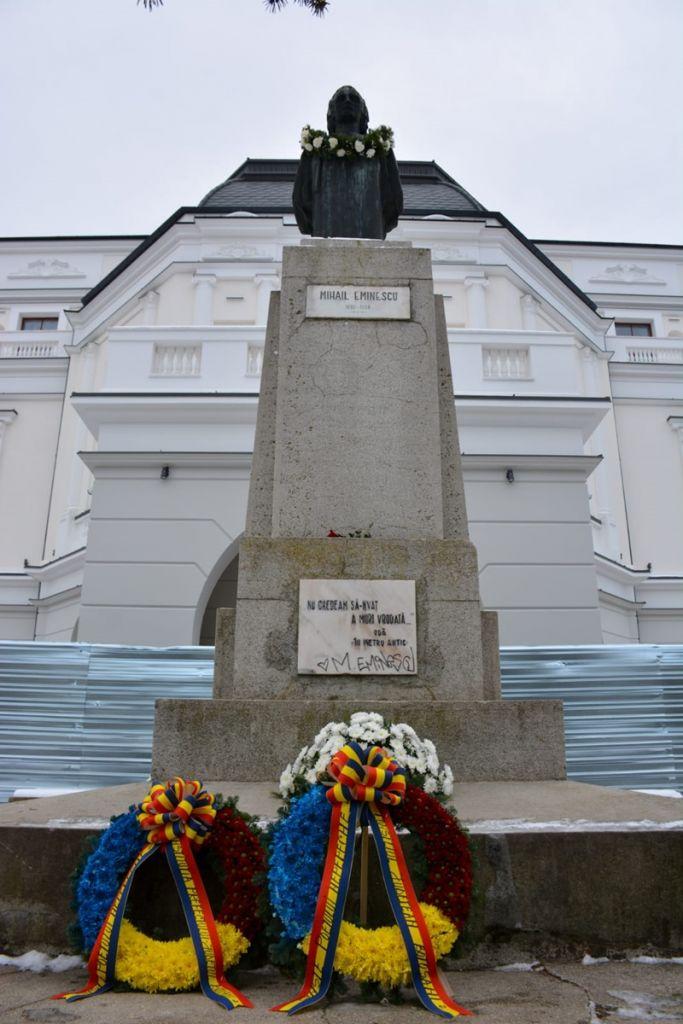 Sorin Cornilă, prefectul județului Botoșani, împreună cu subprefecții județului Botoșani, Elena-Paula Cojocariu-Berențan și Tiberiu Manolache, membrii Cancelariei Prefectului și șefii serviciilor publice de Pașapoarte și Permise Auto Botoșani au depus o jerbă de flori la bustul poetului Mihai Eminescu din fața Teatrului Mihai Eminescu.