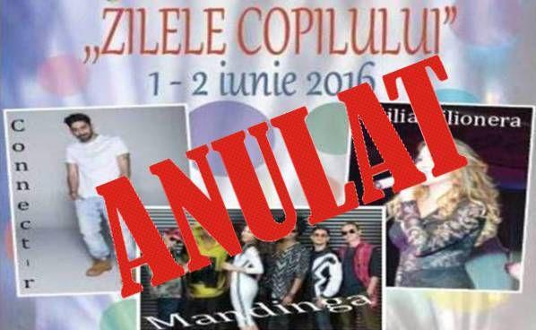 Organizatorii „Zilelor copilului” ediția a-9-a transmit copiilor și părinților că toate activitățile programate pe data de 2 iunie 2016 se anulează, urmând ca acestea să fie reprogramate pentru sfârșitul săptămânii viitoare.
