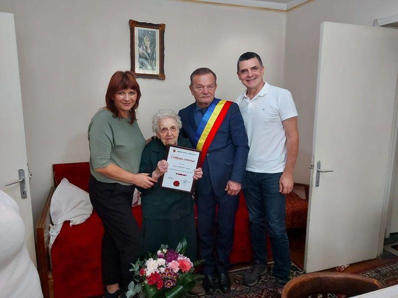 Doamna Prusan Lidia a fost sărbătorită, joi, 19 august 2024, la cei 100 ani, de către o delegație condusă de către cu dl. primar Dorin Alexndrescu.