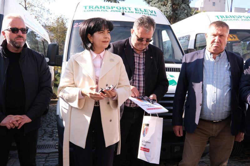 „Este un nou moment administrativ important pentru județul nostru. Astăzi demarăm procedurile de recepție a primului lot de microbuze școlare electrice pe care Consiliul Județean Botoșani le-a achiziționat în cadrul unei finanțări atrase din PNRR. Vorbim de 9 microbuze școlare, care vor ajunge la tot atâtea școli. Totodată, le-am alocat comunelor care au cea mai mare nevoie de microbuze școlare pentru a asigura prezența copiilor la ore. Este un proiect de suflet și de aceea am făcut toate demersurile necesare pentru ca din economiile rezultate din prima licitație să mai achiziționăm încă 10 microbuze școlare electrice. Deci, în total, vom avea în județ 36 de microbuze școlare electrice, la care se adaugă alte 18 microbuze școlare hibride pentru care am semnat contractul de livrare săptămâna trecută. Valoarea totală a acestor microbuze se ridică la peste 11 milioane de euro”, a declarat Doina Federovici, președintele Consiliului Județean Botoșani.