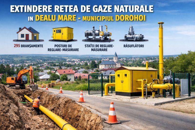 Primarul municipiului Dorohoi, ing. Dorin Alexandrescu, a semnat contractul de finanțare pentru obiectivul de investiții „Extindere sistem distribuție gaze naturale în localitatea Dealu Mare, municipiul Dorohoi, județul Botoșani”, finanțarea fiind asigurată prin Programul Național de Investiții „Anghel Saligny”.