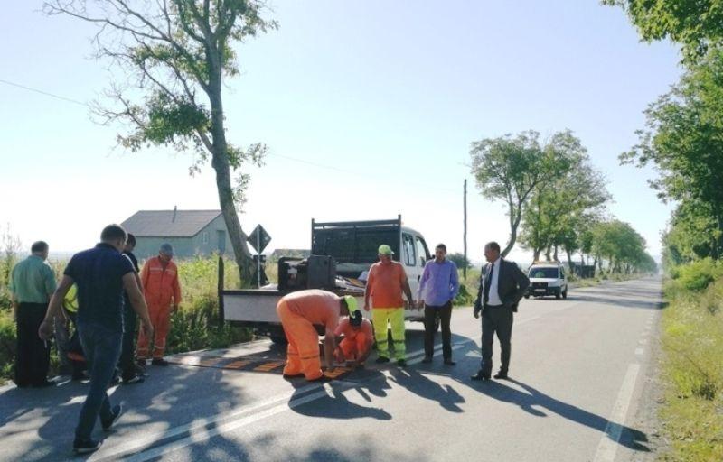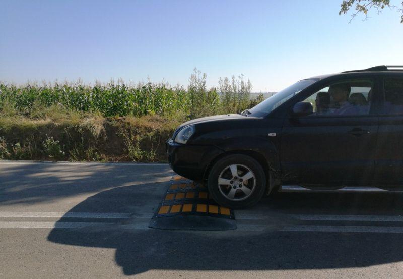 În intersecția de la Orășeni Deal, care în nenumărate rânduri a fost scena unor accidente tragice au fost montate astăzi limitatoare de viteză.