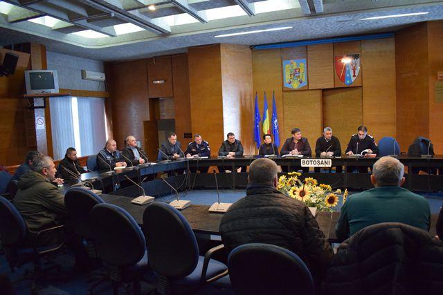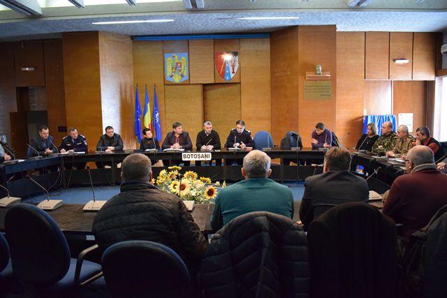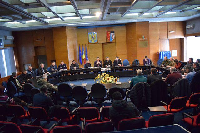 La şedinţă au fost prezenţi reprezentanţii tuturor instituţiilor cu atribuţii în gestionarea situaţiilor de urgenţă ce ar putea apărea în urma manifestărilor meteorologice grave precum şi Serviciului Voluntar pentru Situaţii de Urgenţă aparţinând municipalităţii botoşănene. Prefectul Dan Şlincu a apreciat ca deosebit de importantă găsirea şi internarea în centrele de cazare temporară a persoanelor fără adăpost, în condiţiile în care câteva dintre acestea au refuzat până acum serviciile oferite de instituţiile sociale.