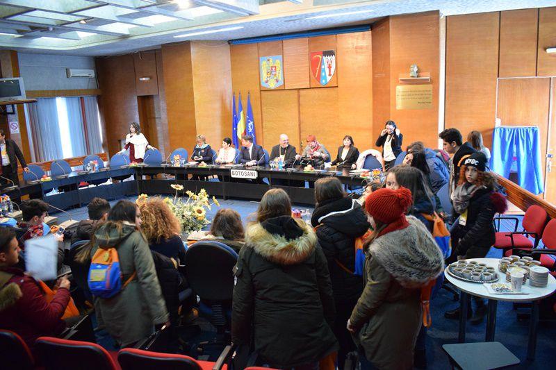 Şapte profesori şi 17 elevi din Germania, Turcia şi Italia au fost astăzi în vizită la Palatul Administrativ, însoţiţi de gazdele lor - patru profesori şi 14 elevi ai Seminarului Teologic „Sf. Ioan Iacob” din Dorohoi, în cadrul derulării proiectului „Erasmus+” de predare/ formare şi învăţare „Foreign languages, better life, perfect jobs”.