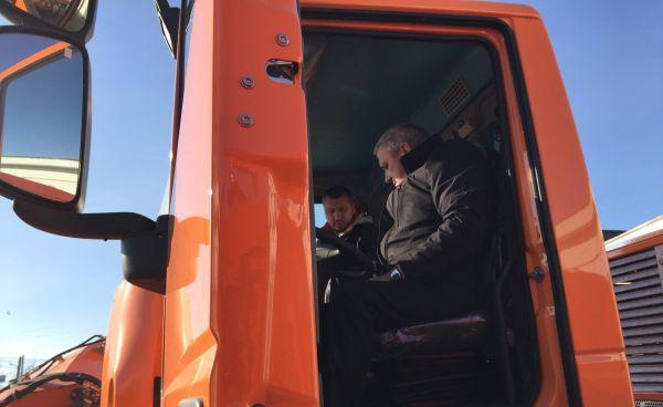 Prefectul Costică Macaleţi a fost luni dimineaţă la sediul Secţiei de Drumuri Naţionale botoşănene pentru a vedea noile achiziţii în materie de utilaje pentru deszăpezit.