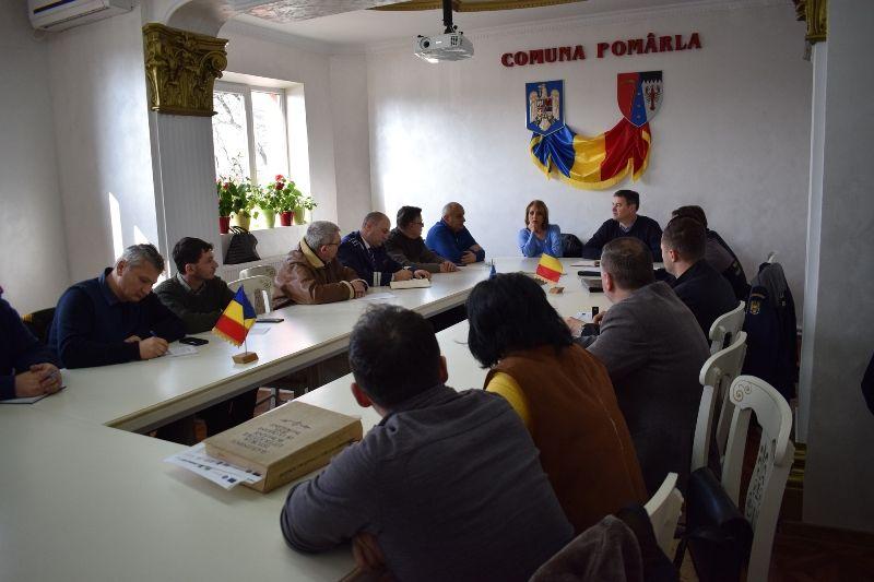 Prefectul judeţului, primarul comunei Pomârla, directorii DSVSA şi medicii veterinari din comună, şefii structurilor MAI, membrii Comitetului Local de Combatere a Bolilor şi membrii Unităţii Locale de Sprijin au participat sâmbătă la o şedinţă la Primăria comunei Pomârla.