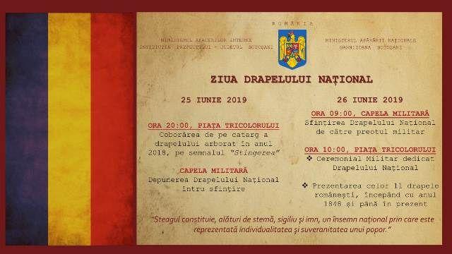 Instituţia Prefectului şi Garnizoana Botoşani invită botoşănenii să participe la Ziua Drapelului, în cadrul unor ceremonii dedicate acestui simbol, sărbătorit anual pe 26 iunie.