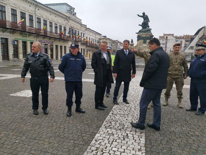 Pentru ca ceremonialul să se desfăşoare în cele mai bune condiţii, traficul în zonă va fi dirijat în intervalul orar 11:30 – 13:30. Structurile MAI şi Poliţia Locală vor fi angrenate atât în asigurarea ordinii și liniștii publice cât și a asistenţei medicale de urgenţe.
