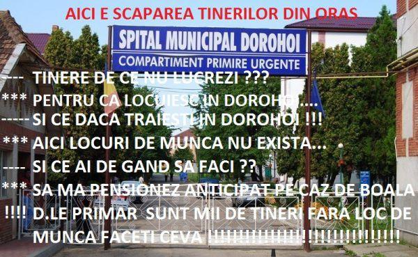 SCURT COMENT ....IN DOROHOI SUNT PESTE 4000 DE TINERI CARE NU MUNCESC CAUTA DAR NU GASESC ,,,VOR DAR NU AU UNDE,,,SI CAND GASESC CEVA SUNT PLATITI CU 20 DE LEI LA ZI ......SI MIE I-MI ZICE DNU MARIAN PAMFLET.... ....ESTI SUB NIVELUL MEU SI DE ASTA TE CRED ....NU STII NICI 1% REALITATEA DOROHOIULUI.