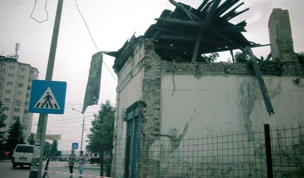 E o cladire veche evreiasca, administrata de vestitul antrepenor Mihai Debelly, care a cerut 3 miliarde vechi Primariei pentru coteatza aia de zid. DAr dupa distrugerea ei, va plati el amenda pentru neingrijirea terenului, a cladirii si punerea in pericol a trecatorilor.