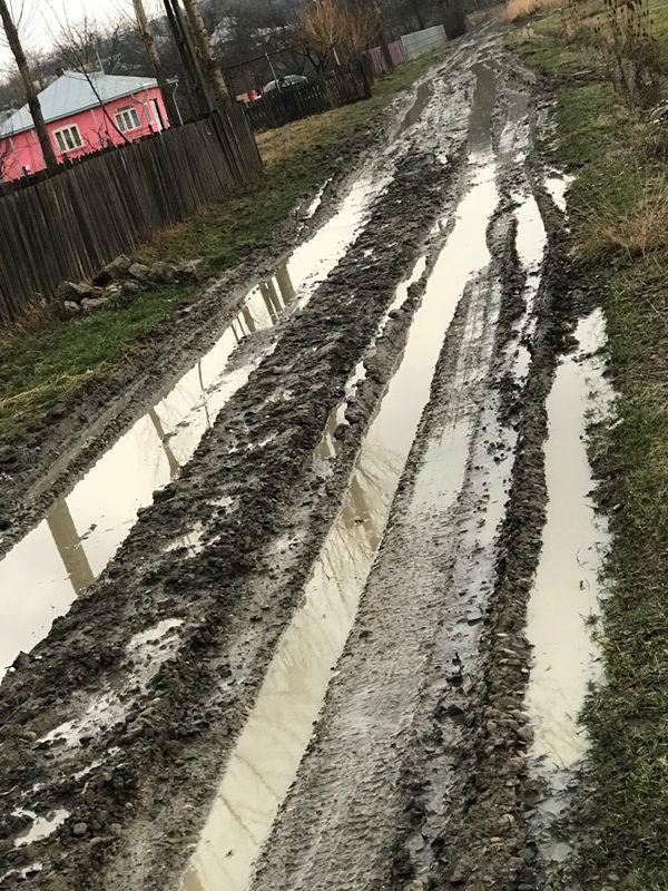 Vă rog dacă puteți să ne ajutați. Locuiesc în comuna Broscăuți pe strada Iazului și priviți în ce condiții locuim, nu putem ieși cu mașina din curte. Unde se vede că stă apa pe stradă acolo sunt și gropi și am distrus mașina.