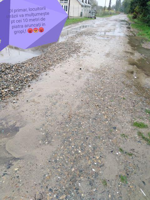 „Domnule primar vă mulțumim că în urma sesizării adresate ați luat măsuri. Locuitorii străzii Oituz vă mulțumește pentru cei 10 metri de piatră aruncați în gropi! Vă invităm să vă inaugurați opera dar vă sfătuim să vă luați cizmele de cauciuc. Aaaaaa și să le verificați nu cumva să fie sparte să vă udați la degete! V-a costat mult balastrul? Nu sunt bani la primărie pentru a remedia problema pe toată strada? Pentru ce plătim taxe și impozite? E bătaie de joc curată! Ceea ce ați făcut este ca și cum ai arunca o mâăa de paie în coteț la porc fără a fi făcut curat după o săptămână. Vă rugăm să vă luați meseria în serios și să trimiteți un utilaj să îndrepte strada cum făceați în anii trecuți și apoi puneți balastru! Sau e prea mare investiția și nu vă ajung banii????”