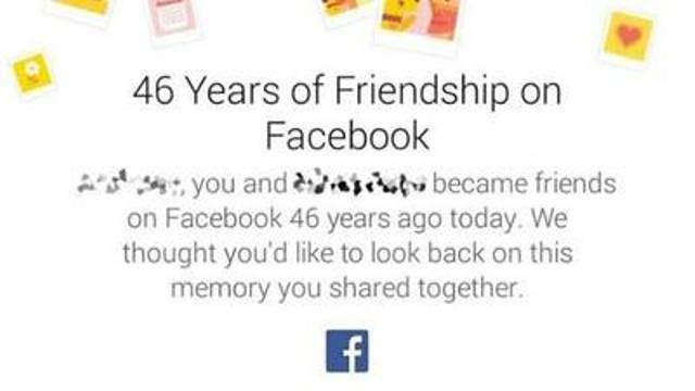 Utilizatorii retelei de socializare Facebook au avut parte de o surpriza, in Ajunul Anului Nou, cand au aflat cu surprinderea ca unele dintre prieteniile lor din retea dureaza de... 46 de ani.