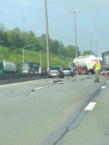 Un șofer italian a frânat camionul, un al doilea șofer, de data aceasta francez, a oprit şi el. Un al treilea șofer, român, nu a reușit să-și încetinească semiremorca și a itnrat în plin în camionul francez în fața lui, o cisternă.