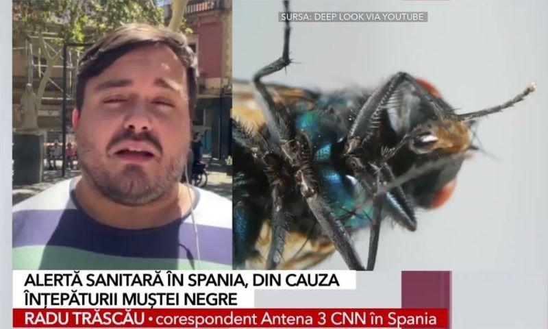 Alertă sanitară în Spania din cauza invaziei de muște negre. Tot mai mulți oameni ajung la spital ca urmare a rănilor provocate de înțepătura acestei insecte.