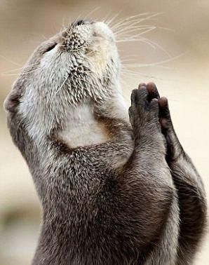 Marac Andrev Kolodzinski, un renumit fotograf din Marea Britanie, a reuşit să surprindă un pui de vidră într-o poziţie care-ţi taie răsuflarea: cu lăbuţele împreunate, ridicând ochii spre cer, vidra pare că se roagă la Dumnezeu pentru mâncare.