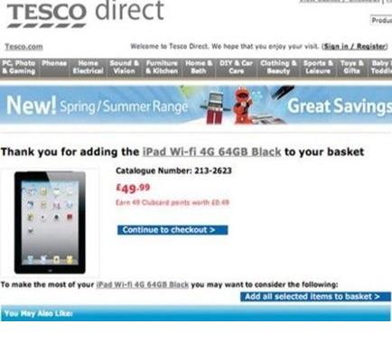 Vestea ca "au iPad-uri ieftine la Tesco" s-a propagat pe Twitter instantaneu. Cei care au apucat sa faca formalitatile de cumparare scriau si feedback "abia am primit mesajul de confirmare a comenzii. Pana acum e bine", scrie mirror.co.uk.