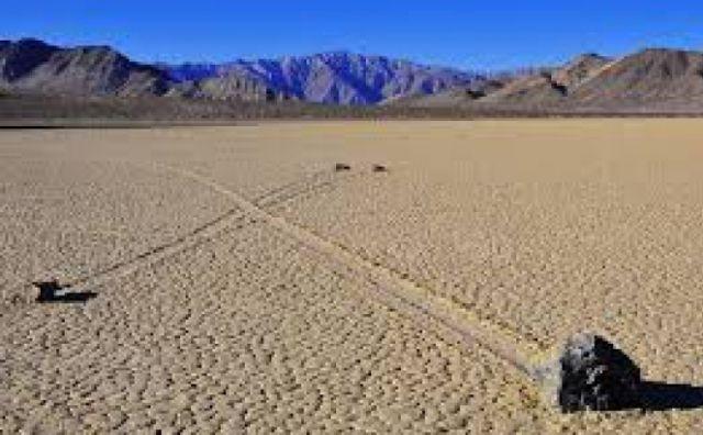 Vizitatorii ocazionali au fost de multă vreme nedumeriți la vederea unor bolovani în mișcare în zig-zag în depresiunea plină de praf cunoscută sub numele de Racetrack Playa, din Death Valley National Park (SUA).
