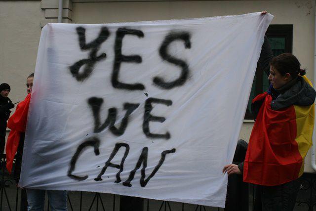 ,,Yes, we can”, ,,We have a dream” și ,,United States of Romania” au scris participanții la eveniment pe bannerele afișate în fața ambasadei SUA din Chișinău. De asemenea, ,,EU integration through Reunification”, ,,Wir sind ein Volk” și ,,Keep calm and unite” au fost mesajele afișate în fața reprezentanței Uniunii Europene, a Germaniei și a Marii Britanii. La sediul fiecărei ambasade a fost lăsată o scrisoare deschisă prin care s-a cerut recunoașterea dreptului populației din Republica Moldova de integrare în spațiul european prin unirea cu România. ,,Considerăm că este și în interesul țării dvs. ca Republica Moldova să se unească cu România în contextul în care pericolul izbucnirii unui conflict în zonă este mare, iar statul român ar putea aduce stabilitatea mult dorită la Dunăre și Nistru pentru NATO și UE”, se menționează în declarație.