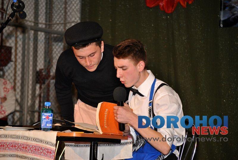 A urmat apoi programul propriu-zis, prezentat de elevii Ecaterina Muha și Lucian Martin. Rând pe rând, pe scenă s-au perindat soliști vocali și instrumentiști, actori și dansatori, cu toții elevi sau absolvenți ai școlii noastre, care au încântat publicul cu talentul lor. La final, după ce s-a cântat „La mulți ani”, toți cei care au contribuit la buna desfășurare a spectacolului au fost recompensați cu Diplome de excelență. (Consilier educativ, Pr. Crețu Vasile Ionuț)