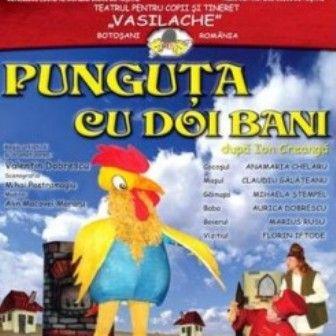 Vă invităm în această lume de poveste duminică, 21 aprilie 2013, la Teatrul pentru Copii şi Tineret „Vasilache” să vizionaţi spectacolul „PUNGUŢA CU DOI BANI” de Ion Creangă, în dramatizarea şi adaptarea scenică a lui Valentin Dobrescu. Regia artistică este realizată de: Valentin Dobrescu; scenografia de: Mihai Pastramagiu; muzica de: Alin Macovei Moraru.