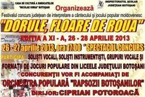 Dupa doua zile de concurs si o seara de Gala, cea de a XI - a editie a Festivalului concurs de interpretare a cantecului si dansului popular moldovenesc „Dorule, floare de roua” s-a incheiat.