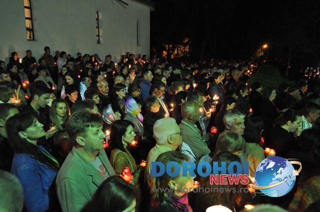 Mii de dorohoieni au luat cu asalt toate lăcașele de cult din municipiul Dorohoi în noaptea de Înviere pentru a lua lumină și a sfinți coșurile încărcate cu bunătăți. Dorohoiul privit la miezul nopții arăta ca un furnicar.