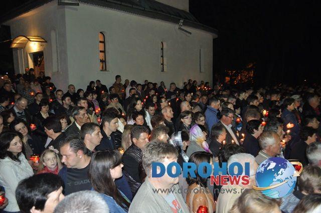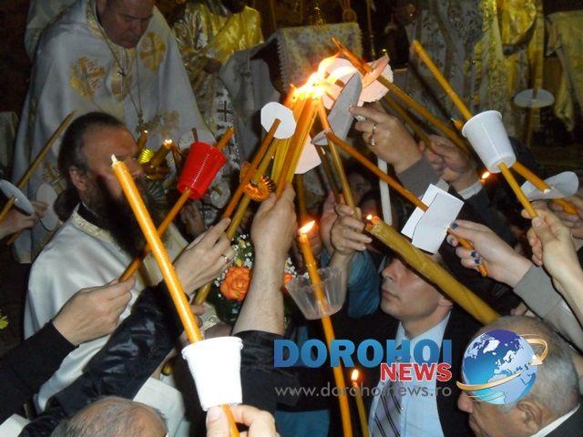 Catedrala din Dorohoi s-a dovedit neîncăpătoare pentru sutele de oameni care au dorit să celebreze Învierea Domnului Nostru Iisus Hristos. Aici, înainte de miezul nopţii soborul de preoţi au împărţit Lumina Sfântă credincioşilor, iar în curtea bisericii a răsunat din glasul părintelui cuvintele aşteptate, „Hristos a Înviat!”, urmate de răspunsul la unison al credincioşilor, „Adevărat a Înviat!”.