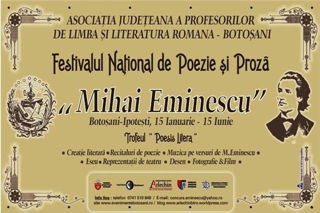 Festivalul Naţional de Poezie şi Proză „Mihai Eminescu” se află la a doua ediţie şi este organizat de Colegiul Naţional „Mihai Eminescu” Botoşani în colaborare cu Societatea Culturala „Arlechin” Botoşani, Memorialul Ipoteşti – Centrul Naţional de Studii „Mihai Eminescu”, Direcţia Judeţeană pentru Sport şi Tineret Botoşani.
