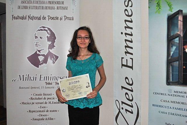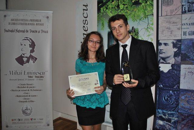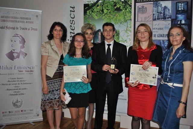 Dorohoiul şi-a reconfirmat implicarea culturală la nivel de judeţ, prin două premii obţinute la secţiunile FOTOGRAFIE şi POEZIE: Marius Petrescu (Premiul special la fotografie – secţiune ce a cuprins imagini de la activităţile şi evenimentele dedicate poetului Mihai Eminescu şi care a fost coordonată de Asociaţia Judeţeană a Profesorilor de Limba şi Literatura Română – Botoşani) şi eleva Colegiului Naţional “Grigore Ghica” Dorohoi, Ana Maria Gîbu (în cadrul Festivalului Naţional de Poezie şi Proză “Mihai Eminescu” – Secţiunea CREAŢIE LITERARĂ ŞI POEZIE, realizată în parteneriat de I.S.J. Botoşani – Inspector şcolar general prof. Mihaela Hunca şi inspector de specialitate – prof. Otilia Sandu, Colegiul Naţional „Mihai Eminescu”- Director – prof. Cristina Chiriac şi Asociaţia Judeţeană a Profesorilor de Limba şi Literatura Română – Botoşani – prof. Diana Damean).