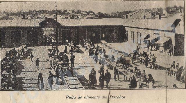 Până în anul 1897, piaţa de alimente şi animale a oraşului Dorohoi se afla în faţa primăriei. Până la acea dată nu existau aici decât câteva tarabe, iar restul comerţului era plasat direct pe sol. Concomitent cu aşa-zisa piaţă, mai exista una pe o mică porţiune ce aparţinea primăriei, aproximativ pe locul actualei pieţi. Începând construcţia Catedralei şi fiind în plan şi construcţia noului local pentru primărie, primarul de atunci - Gheorghe Gh. Burghele, a tratat cu proprietarul Gheorghe Pârlogeanu pentru terenul acestuia în vederea lărgirii pieţii. Primăria i-a dat lui Pârlogeanu în schimb altă porţiune de teren, în apropiere, pe strada principele Carol. În următorii ani, noua piaţă a oraşului s-a dezvoltat, s-au construit de jur-împrejur clădiri ce erau închiriate diverşilor negustori, iar în vale s-a construit piaţa de furaje şi animale. În pavilionul din vale s-a instalat şi un cântar pentru cereale. Tot în piaţă s-au construit două fântâni cu pompă, iar piaţa din vale a fost împrejmuită. În anul 1929, primarul oraşului, avocatul Alexandru Răutu, împreună cu consilierii, hotărăsc modernizarea pieţii prin concesionare. De asemenea, cei care au luat parte la construcţii cu fonduri proprii, vor putea folosi clădirile construite de ei până la sfârşitul anului 1954. Conform actelor de arhivă cercetate, lucrările au fost executate de arhitectul Sigmund Olier, de dr. Streimingher şi Isidor Kreisel. Piaţa pentru animale s-a mutat în Obor, care,din 1918 a fost folosit şi ca teren de fotbal.